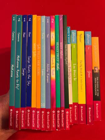 I am selling a set of 17 paperback American Girl books. Most are brand new. The Rebecca book has some glue on the cover (see picture). Comes from a smoke free home. Asking $50 cash, PayPal, or Venmo.