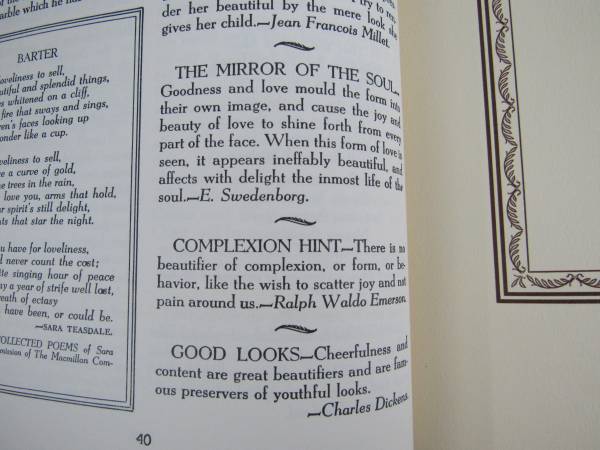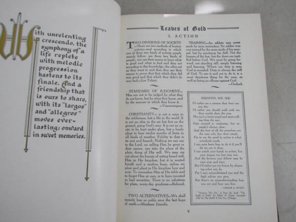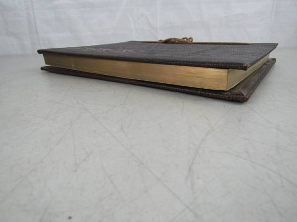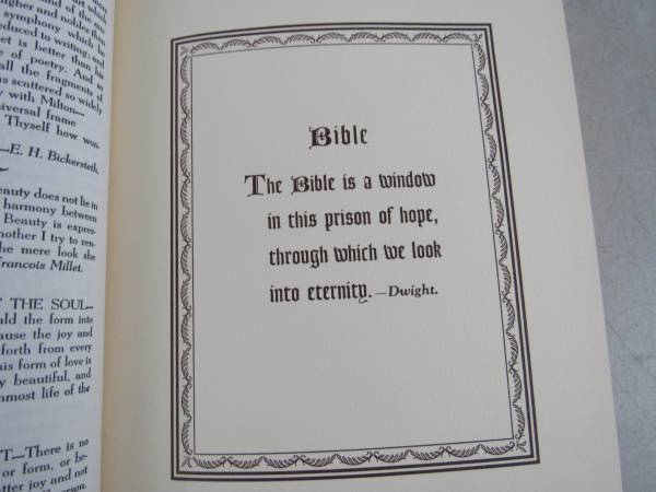 The is an Anthology of Prayers, Memorable Phrases, Inspirational Verse and Prose. The hand bound leather hard back book. Revised edition 1963 twelfth printing. The printing is in a large print on bonded paper with 200 pages. The book is in very good condition. No rips, tears, written on pages, or missing pages. Some minor age usage wear to the book cover's edges and corners.