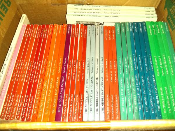 Library-quality collection of The Middle East Journal, the premier policy journal for Middle East issues. 115 volumes, 1985-2014. A valuable reference and research asset. Unmarked texts. Cash &...