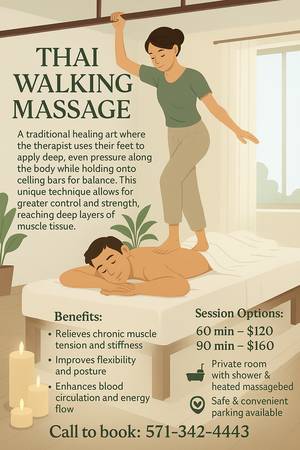 โจ A traditional healing art where the therapist uses their feet to apply deep, even pressure along the body while holding onto ceiling bars for balance. This unique technique allows for greater control and strength, reaching deep layers of muscle tissue.