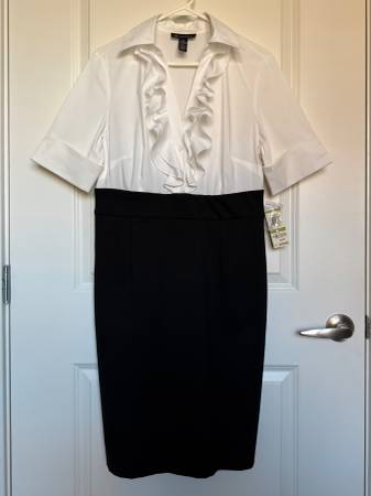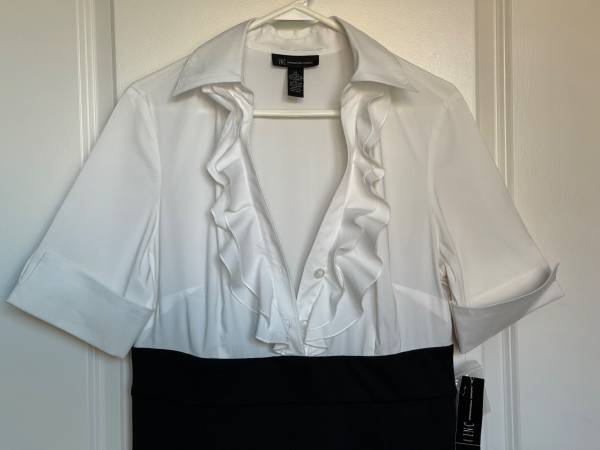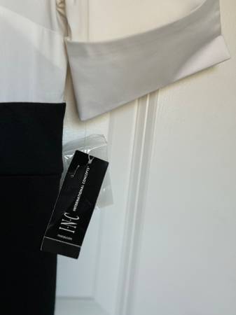 This beautiful black and white dress by INTERNATIONAL CONCEPTS (also called “INC”) by MACY’S was purchased brand new, never worn, and stored in my clean and smoke-free home. The original purchase price was $119 and the tag is still attached!