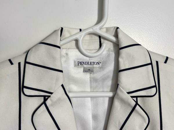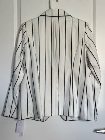 This absolutely gorgeous jacket is very classy-looking. It is in NEW condition and has never been worn! The store tag is still attached to the sleeve with the extra button! The original price on the tag is $198, and the marked down price on the tag is $159.