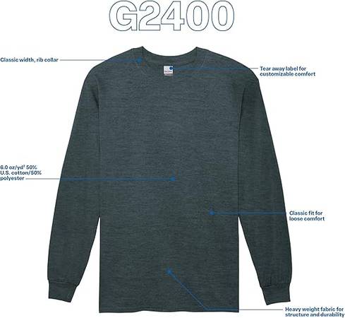 Brand New pack of 72 Gildan Long sleeve Dark Heater colored T-Shirts. They are all Large size. Please let me know if you are interested.