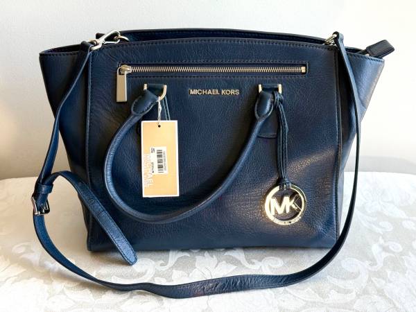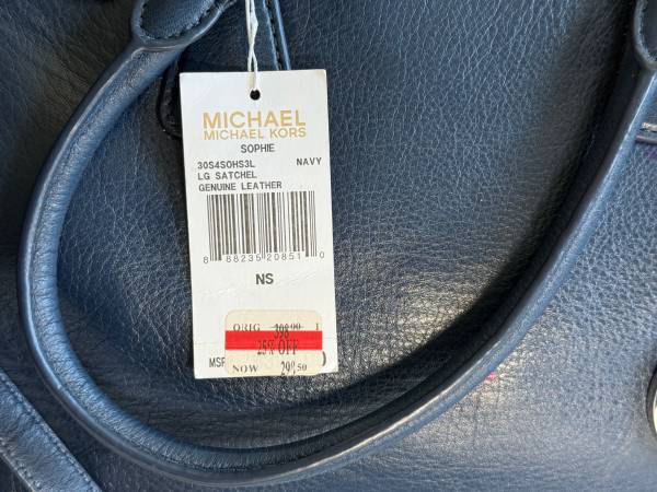 MICHAEL KORS "SOPHIE" Navy Blue Leather Large Satchel or Purse, New with Tags, Genuine Leather!
