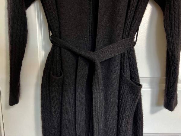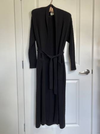 This stunning full length women’s sweater coat/dress by renowned brand NEIMAN MARCUS is beautifully constructed of 100% cashmere — a fine, soft and luxurious wool fabric. Cashmere is known for its exceptional softness and warmth compared to other wools.
