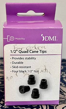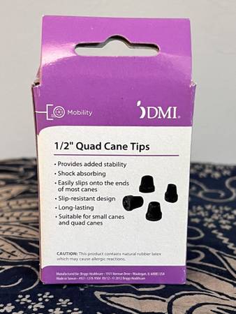 DMI Mobility cane tips, provides stability, durable, skid-resistant, four black 1/2" tips. Happy to drop it off within a five-mile radius for an additional $5.00 fee or mail it at USPS's first class...