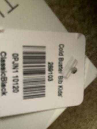 Brand new with tags. Warmest kids bib available. Black for 12 year olds, but could fit, older, larger kids as it seems to me. Can search it on llbean.com under Kids' Cold Buster Snow Bibs Selling...
