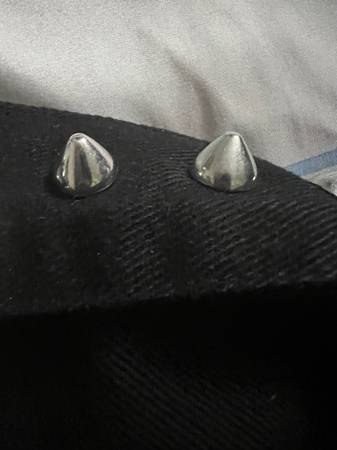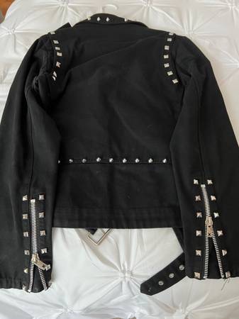 Mens black studded fashion jacket 100% heavy cotton trimmed in spike studs mens size Med Condition like new never worn This is the dress up rockstar punk or goth This jacket would look look great on...