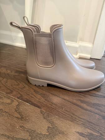 Women’s like new all weather taupe booties, size 9. $10 Workout clothing (Yogalicious capris, 3 tanks, 3 sports bras, new socks). $15 Size women’s 9/mens 7 new with tags Crocs. Vineyard Vines Shep...
