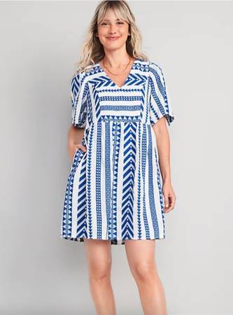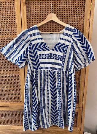 Dress is in excellent condition and new with tags. Has pockets!! Material is very soft and has an “embroidered” look. Dress is fully-lined and is a pull-on – no zipper. Reminded me of a Devotion Twins Embroidered Ella Tunic Dress.