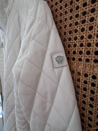 Jessica Simpson quilted coat – NWT Jessica Simpson winter-white quilted coat. Jacket has full front zip, 2 zip-up side pockets, and a zip breast pocket. Arm cuffs have snap allowing a rolled cuff look, showcasing beautiful white and pink floral lining.