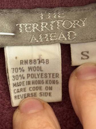 70% wool ; 30% polyester jacket with button closure and striped design. Recently dry cleaned like new