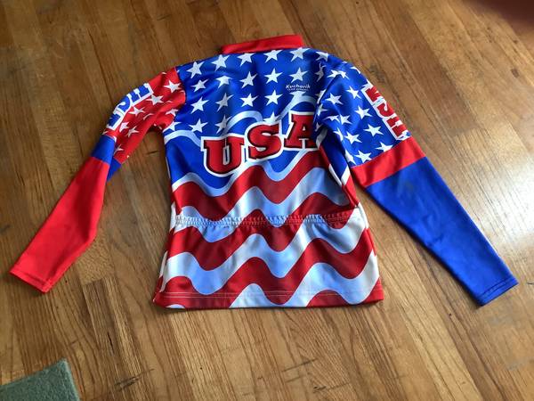 Kucharik clothing kids long sleeve thermal cycling jersey. Size medium. Very good condition. 3 rear pockets. 1/4 zip front.