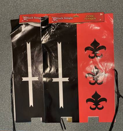 It's Renaissance Faire and Halloween season! For $30 you'll get two: youth knight tunics, helmets, chest protectors, shields and plastic swords. If you only want one set, it's $20.