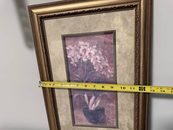 This is a framed art print of an orchid floral still life. * The print is signed by the artist Vivian Fla