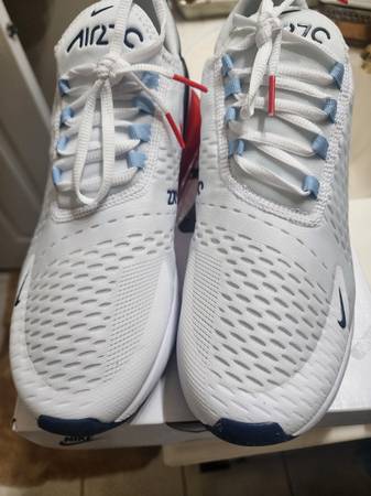 Air Max 270 size 10, white/chile red - midnight navy Stock no. J5172 100K. Use once for 3 hrs. Location zip code 20110. Public meet up Walmart Liberia. Paid $150. Selling for $70.00.