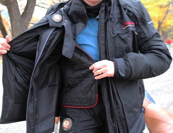 This rare vintage Indian Motorcycle women's tour medium jacket and pants set is a unique find for any biker looking for a stylish and protective outfit. Made from a combination of polyester, nylon, spandex, Thermolite, and 100% polyester, this two-piece set features a zipper closure, visible Indian Motorcycle logos, and includes 10 pockets for storage. The jacket and pants are designed with shoulder and elbow armor, thermal lining, and removable lining for added comfort and protection. An additional feature I really like is a neck/face shield that Indian calls a “Storm Collar” for those cold rides. Perfect for winter riding, this 3-layer set offers both performance and style for the modern motorcycle enthusiast.