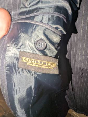 Fabric in great condition, just needs a dry clean. Show how Trumpy you really are with this power suit. Wool fabric and double vent in the rear. Ask about our schedule C discount!