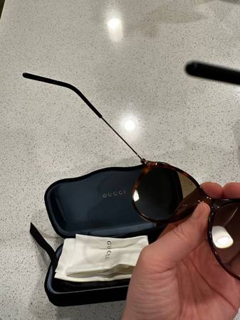 Brand new brown Gucci sunglasses with 100% UV Protection. Includes case & cloth. 58mm lens width; 15mm bridge width; 145mm temple length Original price $470
