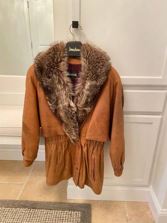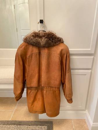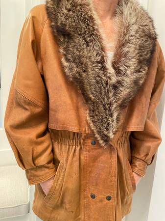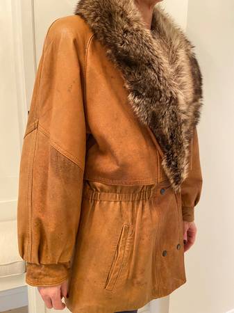 Beautiful vintage brown color leather women's coat with fox collar. Very on-trend, soft supple leather, perfect and stylish for cool weather!