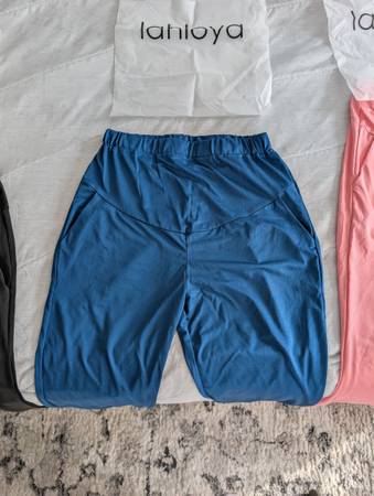 Three brand new lahloya maternity pants. Too small for me. Size small. Price for all.