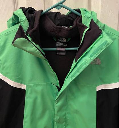 For sale… The North Face Jacket Boys Kids-North Face winter jacket. Great jacket/shell with zip-out liner for snow, rain, wind, play and mountain sports. -Large Green/Black Snow-Rain-Wind...