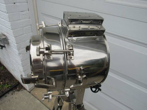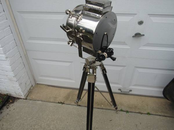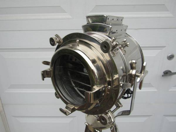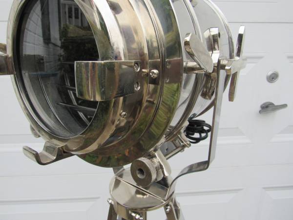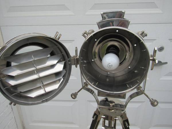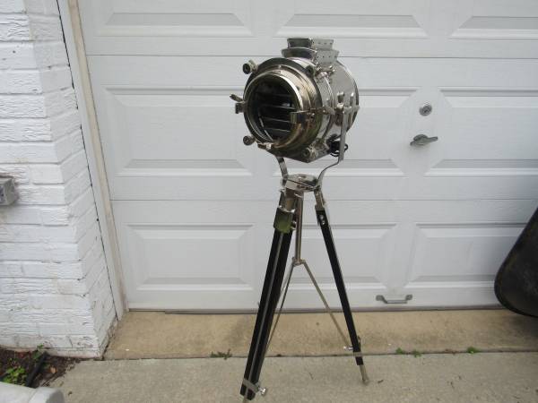 The lamp is 63 1/2" tall at it's highest adjustment. At it's lowest adjustment the lamp is 45 3/8" tall. The lamp head is also adjustable. Made of chrome platted metal, with the tripod is wood and metal. The lamp is in good working and cosmetic condition. All is functioning as it should. No broken or missing parts.