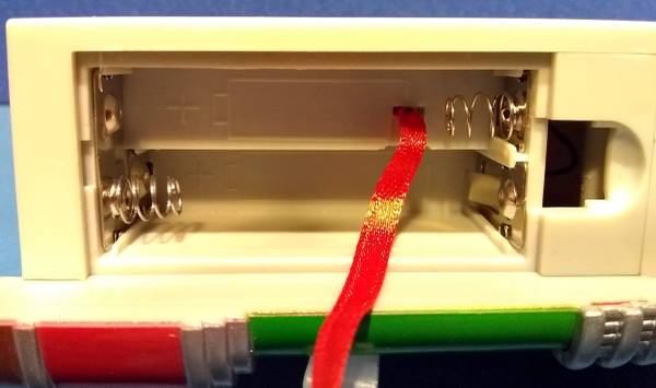 The ornament also plays part of the song "I'll Be Home for Christmas". It is powered by three AAA batteries. The battery box is clean (no battery leaks). The originally factory supplied batteries are included, but have been removed from the battery box to prevent damage should they leak.