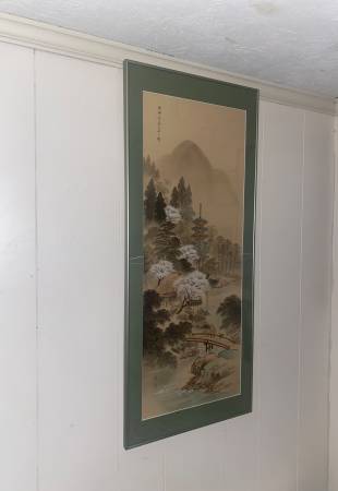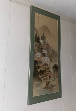 Larger Asian Watercolor 1900s Spectacular Asian Village from the top to the bottom Measurements: high 47”x20”wide. is professionally framed.