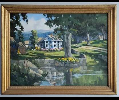 Also selling a larger horizontal New England farm scene in a gilded frame, another Tutwiler original oil - 27" wide x 21.5 tall. $795 firm