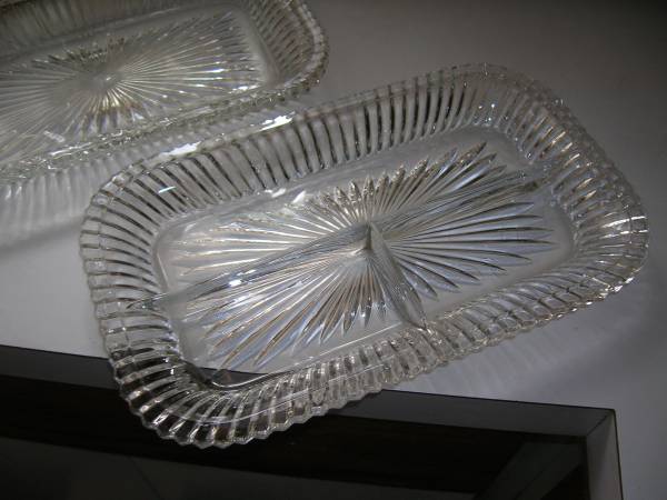No iPhone or texting. eMail only Pair of Two Heisey Condiment Dishes from back in the day. Oh so VINTAGE and signed with the classic "H" in a "Diamond" Each dish measures 10.5" long x 6.25" wide One...