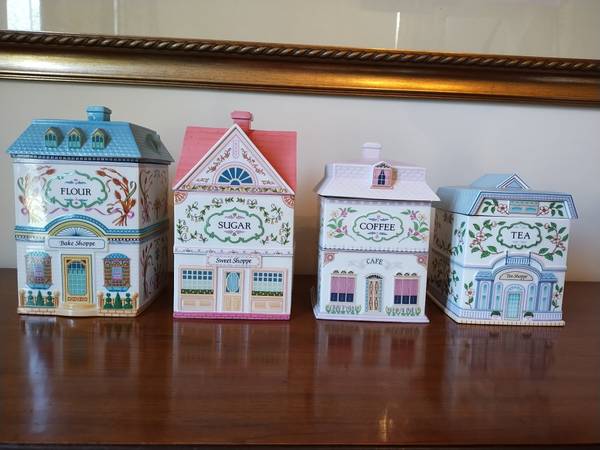 Title: Vintage Lenox Village Canister Set - Flour, Sugar, Coffee, Tea
