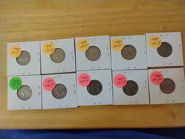 I have a group of 10 Buffalo Nickel Coins for sale. They come in a cardboard flip. I have the following dates available: 1937. Qty 6 1937-D. Qty 4 I am asking $20.00 cash for this group of 10 coins.