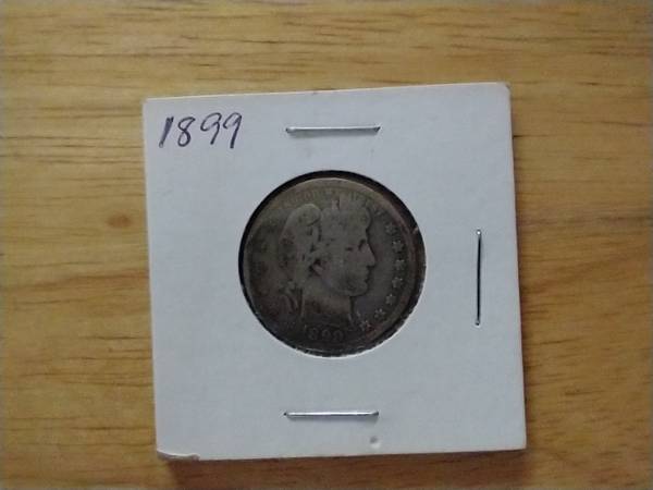 I have a 1899 Barber Quarter Dollar coin for sale. It is 90% silver. I am asking $25.00 cash for this coin.