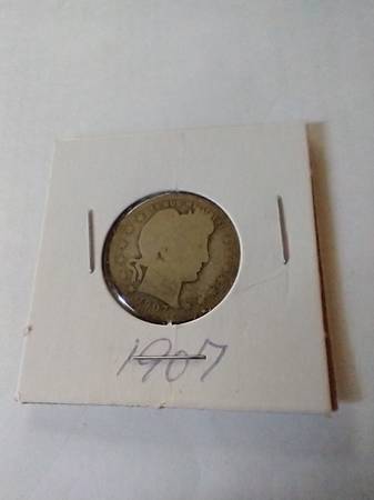 I have a 1907 Barber Quarter Dollar coin for sale. It is 90% silver. I am asking $6.00 cash for this coin.