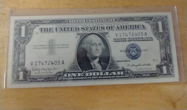 I have a 1957 B One Dollar Silver Certificate in uncirculated condition for sale. It comes in a protective sleeve. I am asking $40.00 cash.