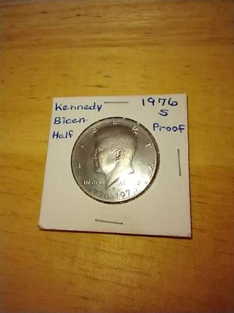 I have a 1976-S Proof Kennedy Bicentennial Half Dollar coin for sale. It comes in a cardboard flip. I am asking $8.00 cash.