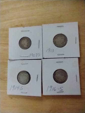 I have four Barber Dimes for sale. They are 90% silver. I have the following dates available: 1907-S 1913 1914-S 1916-S I am asking $3.00 cash for each coin.