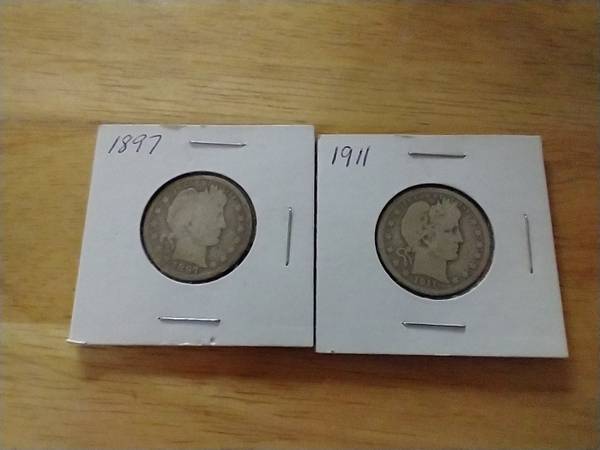 I have two Barber Half Dollar coins for sale. They are 90% silver. I have the following dates available: 1897 1911 I am asking $20.00 cash for each coin.