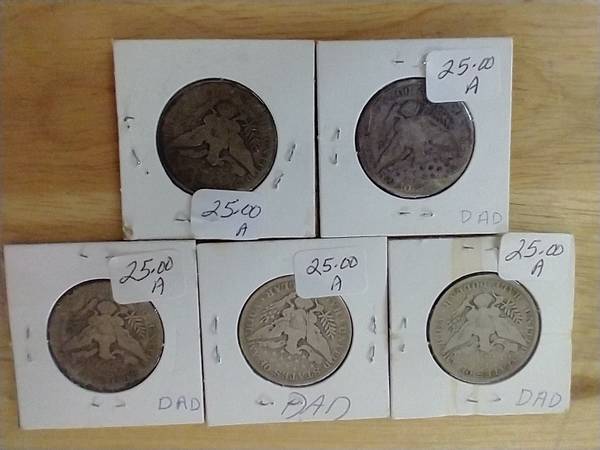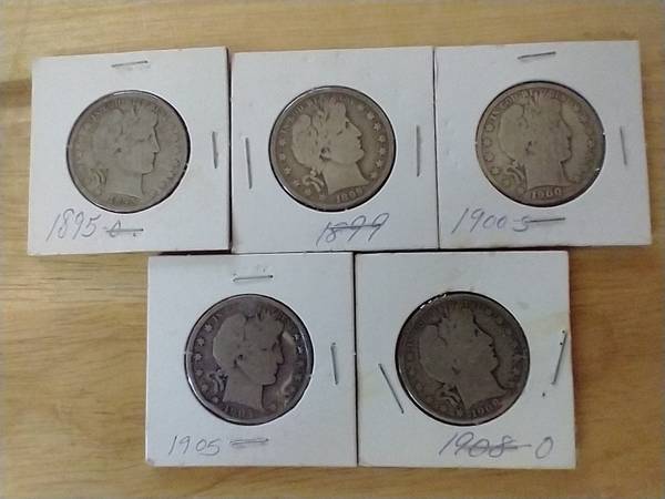 I have five Barber Half Dollars for sale. They are 90% silver and come in a cardboard flip holder. I have the following dates available: 1895-O 1899 1900-S 1905 1908-O I am asking $25.00 cash for...