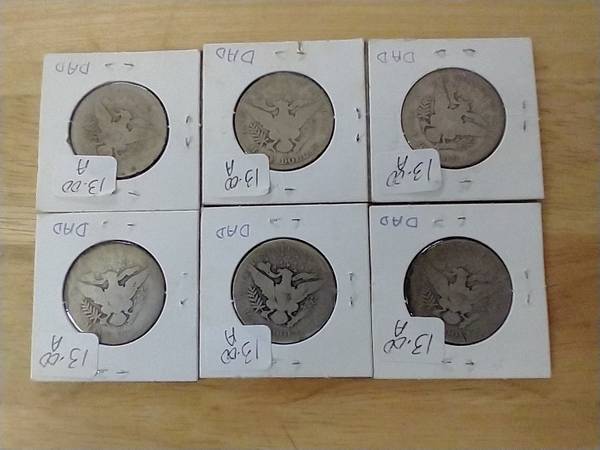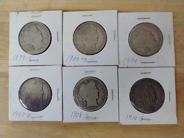 I have seven Barber Half Dollars for sale. They are 90% silver and come in a cardboard flip. I have the following dates available: 1899-S 1900-O 1904 1907-D 1908-S 1910 sold 1910-S I am asking...