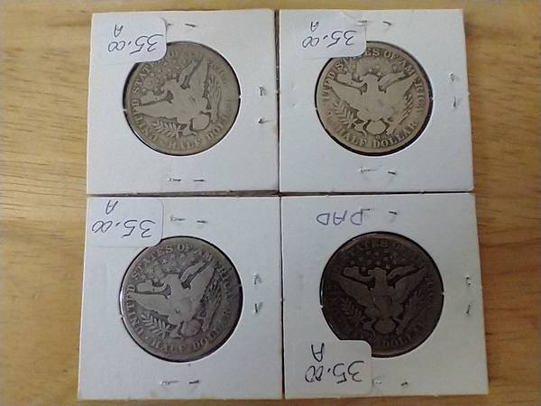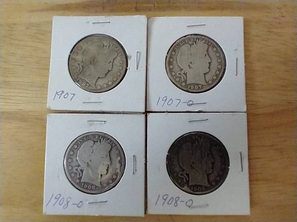 I have four Barber Half Dollar coins for sale. They are 90% silver and come in a cardboard flip. I have the following dates available: 1907 1907-O 1908-O ( 2 available ) I am asking $35.00 cash for...