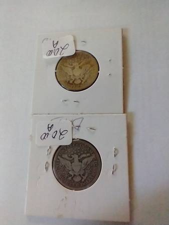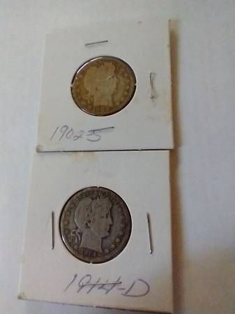 I have two Barber Quarter Dollar Coins for sale. They are 90% silver. I have the following dates available: 1902-S 1914-D I am asking $20.00 cash for each coin.