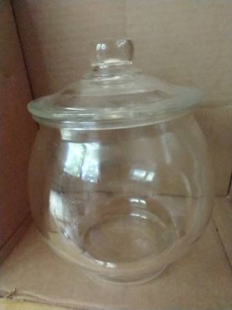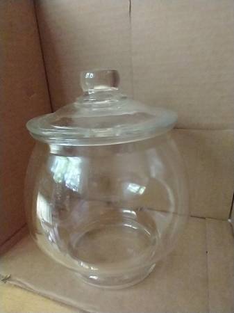 I have a covered glass bowl for sale. It measures 7 inches tall by 7 inches wide. It can be used as a candy dish, cookie jar or for your pet's snacks. There are no chips or cracks in the bowl. I am...