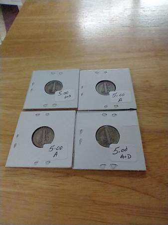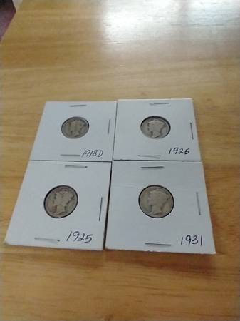 I have four Mercury Dimes for sale. They are 90% silver. I have the following dates available: 1918-D 1925 ( 2 available ) 1931 I am asking $5.00 cash for each coin.
