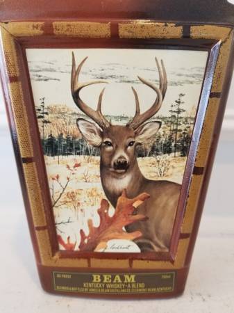 Date Range 1970-1979 70's Vintage Wild Life Collection Beam Whiskey Bottle With Stopper - With a Reproduction of James Lockhart Painting of Wild Life Note: the bottle is empty Will Ship (Buyer Pays...