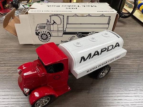 Vintage - Scale model truck - NEW in the box Locking coin bank with key MAPDA Ocean City 1997 Die Cast Metal About 7 inches long and 3 inches tall