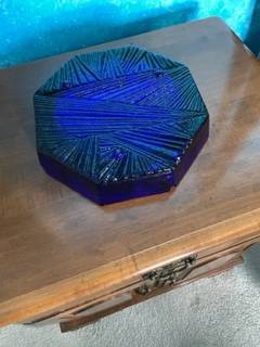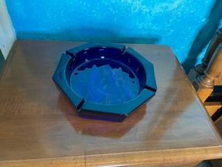 9.34 inches in diameter, never used as an ashtray, beautiful cobalt blue color