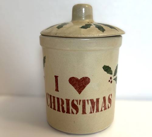 Christmas Cookie Jar, Roseville Pottery, 1 qt Perfect Christmas decoration Please let me know if you have any questions Thanks, Stephen