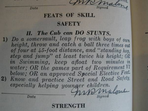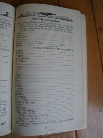 For sale is a vintage 1943 WOLF CUB SCOUT BOOK Part I published by the Boy Scouts of America. This book has a 1943 copyright date. The book is in excellent condition with minimal wear wear. The 122-page booklet is complete. The original owner wrote on the inside the book on some pages. “A real Cub is SQUARE, not because of any policeman, but because he wants to be square.” Learn secret codes, how to make shadow puppets with your hand, and other valuable life hacks. Page 65 has the cub health inspection checklist. The most disturbing part of the health checklist is the following advisory: “The urinalysis requirement is optional, although highly desirable.” An essential publication for your survival bunker.